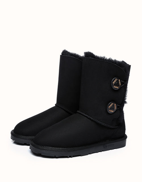 Les Twin Button sont dotées d'une ouverture latérale à deux boutons, à la fois élégante et fonctionnelle. L'intérieur moelleux qui déborde sur le dessus est d'une douceur et d'un luxe exquis. Mettez-vous en valeur et enfilez ces bottes pour avoir la sensation de marcher sur un nuage.