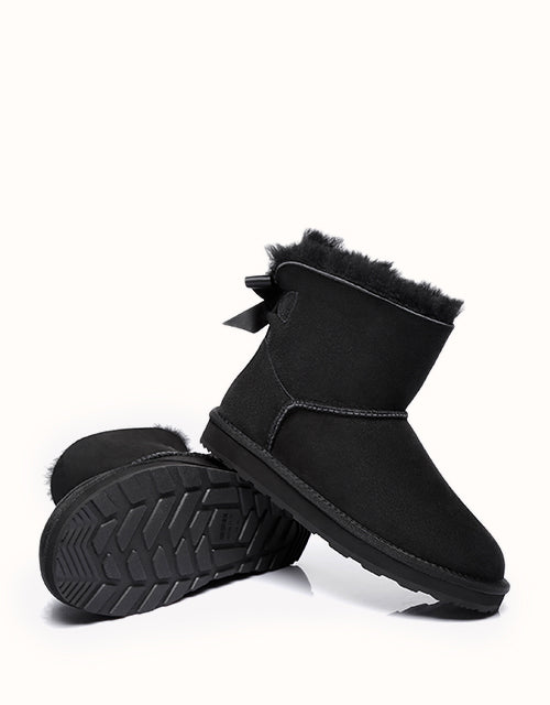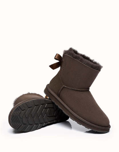 Cette magnifique paire est polyvalente. De la détente à la maison au brunch, elle s'harmonise facilement avec votre garde-robe et est une reine du confort ! Son adorable nœud à l'arrière propulse ce modèle vers la célébrité et coche toutes les cases du design, notamment en cuir de mouton double face de qualité supérieure et en semelle en caoutchouc durable.