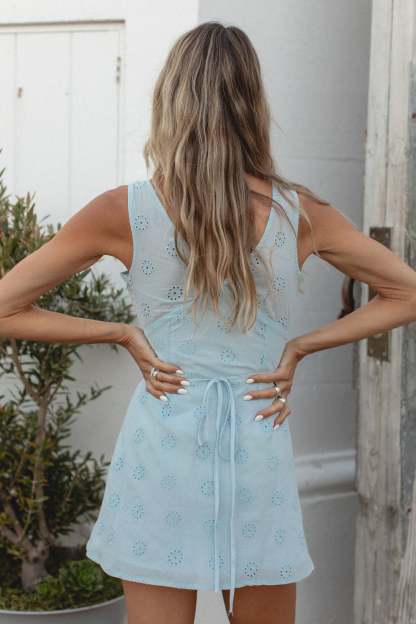 Crafted from 100% cotton, the Ciao Amore Woven Eyelet Mini Dress is perfect for hot Summer days. Its beautiful eyelet designs add a touch of fun detail to your closet.