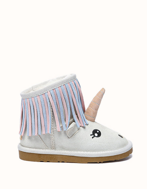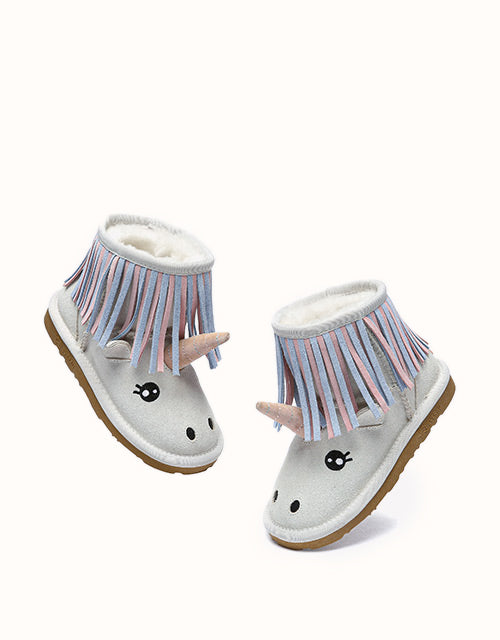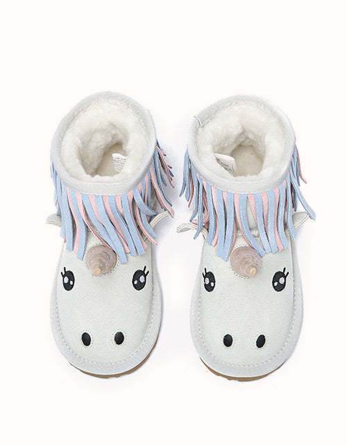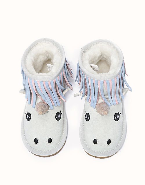 Gardez vos petits au chaud cette saison avec les charmantes bottes licornes pour enfants, où le confort rencontre la magie de l'aventure ! Dès leur entrée dans ce monde magique, l'intérieur en laine de mouton luxueuse gardera leurs petits pieds bien au chaud. Soyez assurés que la semelle extérieure en caoutchouc durable les protégera par tous les temps, car elle est conçue pour résister à l'usure de leurs jeux énergiques.