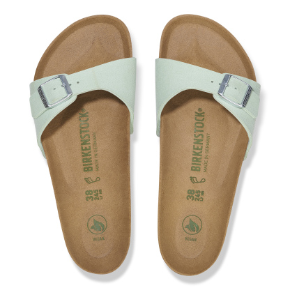 Le modèle Madrid, l’un des grands classiques de BIRKENSTOCK, affiche un design épuré qui ne laisse personne indifférent dans l’univers de la mode. Le matériau de cette sandale iconique a été revu et le modèle est dorénavant disponible en version vegan. Elle est désormais exempte de tout composant d’origine animale, conformément aux tests effectués par des laboratoires de contrôle indépendants. Sa tige est confectionnée dans une matière synthétique douce au contact de la peau et au toucher velouté.