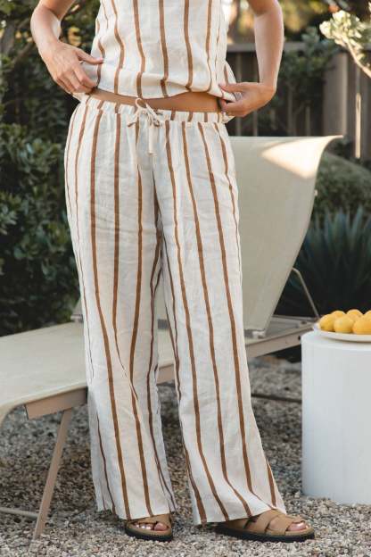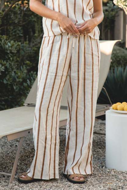 Meet the perfect 100% linen pants to complete our Capri Linen Collection. These pants are lightweight and not lined, making them the breezy pants you want to grab all year long. Made with a wide leg and a drawstring waist, these effortless and oversized pants will be an easy fit.?