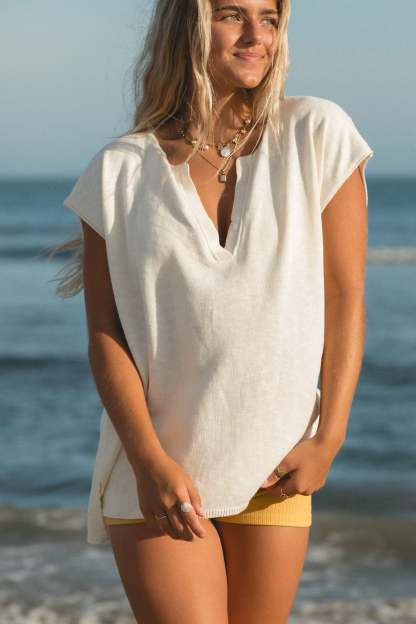 The Wesley Oversized Knit Top is the perfect neutral addition to any wardrobe. Featuring a comfortable and stylish oversized fit, short sleeves, and a knit fabric, this top is versatile and can be dressed up or worn for a cozy day in.?